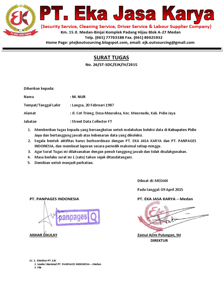 Contoh Surat Tugas Kerja Surat Pengusaha Kerja